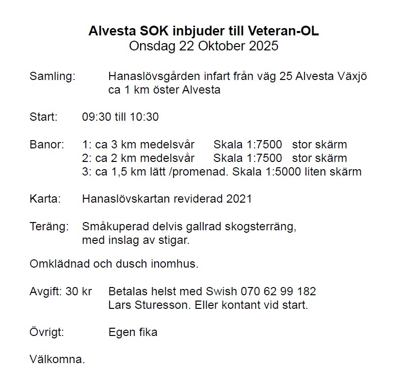 Inbjudan till Veteran-OL Onsdag 22 Okt 2025